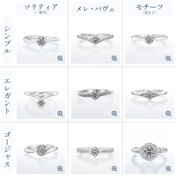 一生に一度のものだからこそ、納得がいくまで彼女の好みのデザインを探せるのは嬉しいポイントです。多彩なデザインバリエーション
