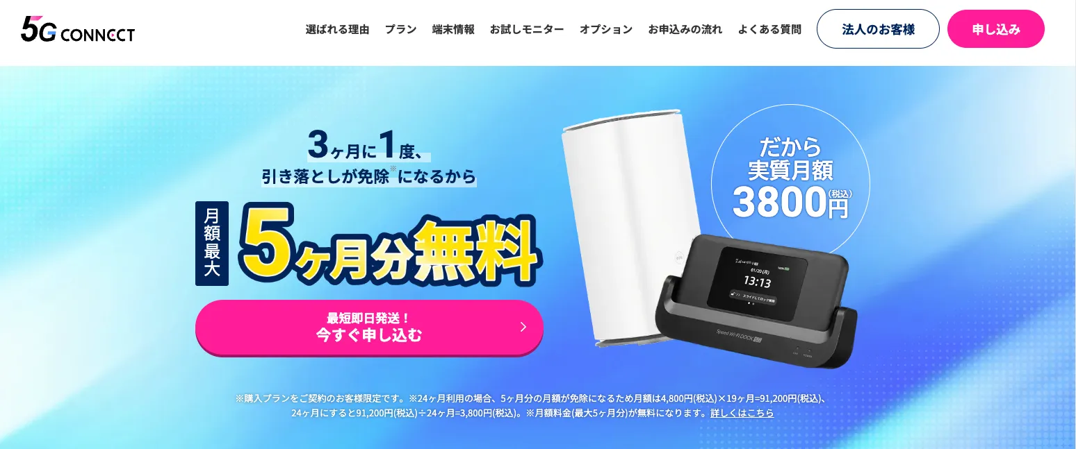 中でも1位の5G CONNECTは短期契約にも長期契約にもおすすめで、自分がどのくらい使い続けるかわからない、などのお客様や、まずは使ってみたい、とにかく安くネットを使いたいという方におすすめです!